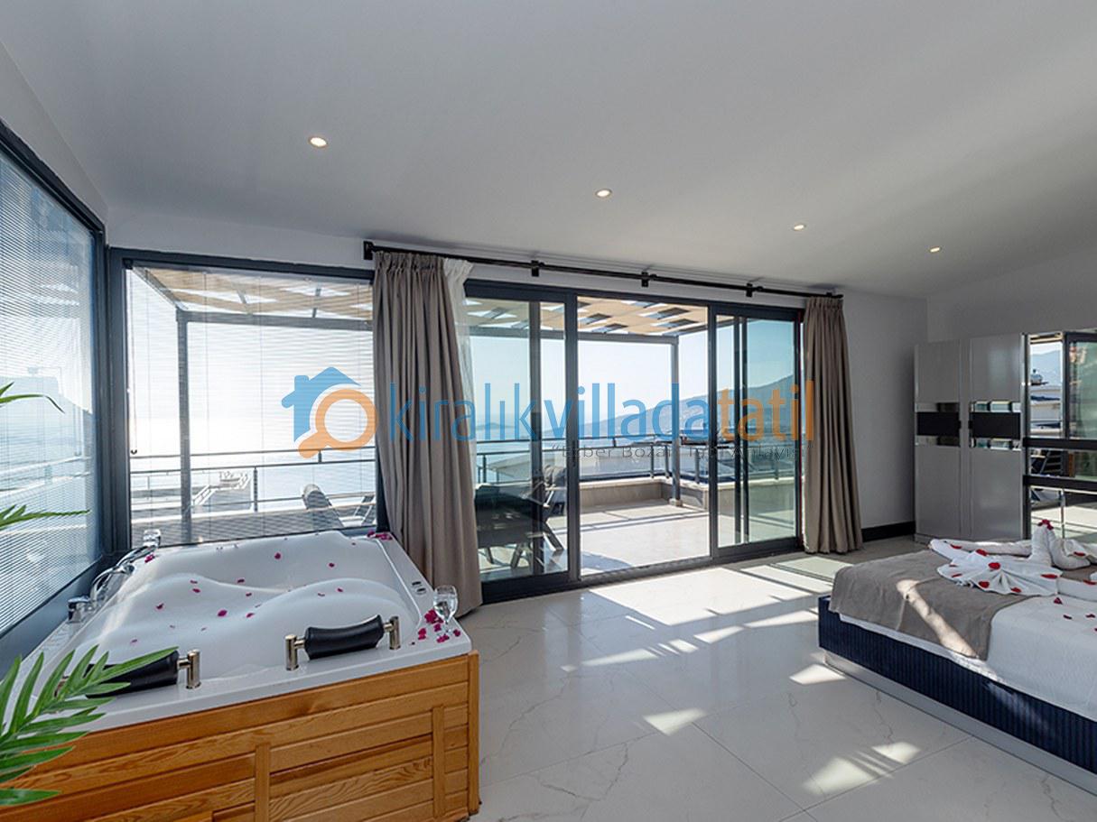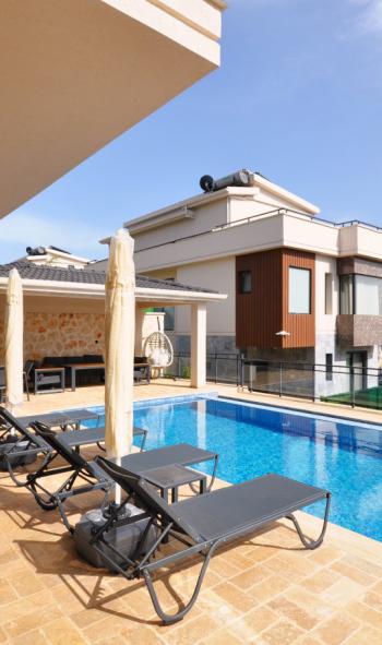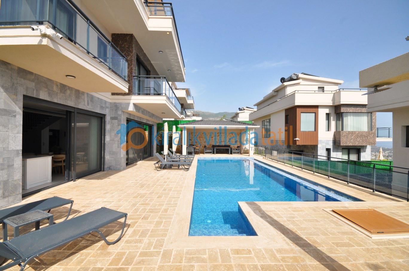 Modern tasarım ve rahatlığı bir araya getiren bu lüks villa, geniş ve aydınlık yaşam alanlarıyla sizleri karşılıyor. Terasta yer alan jakuziyle gün batımını izleyerek eşsiz bir deneyim yaşayabilir, denize olan yakınlığıyla tatilin keyfini çıkarabilirsiniz. Kalkan’ın büyülü atmosferinde, sevdiklerinizle huzurlu ve keyifli vakit geçirmek için bu özel villayı tercih edebilirsiniz. Bu villada, her anı mutlulukla anacağınız değerli hatıralar biriktirecek ve tatilinizin tadını doyasıya çıkaracaksınız.