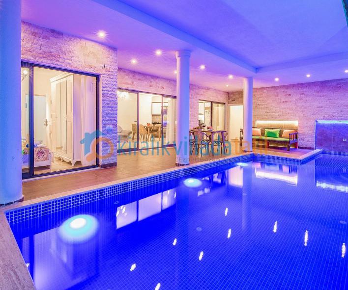 Villanın iç kısmı modern mobilyalarla donatılmış olup, mutfak ekipmanlarından yaşam alanlarına kadar ihtiyaç duyabileceğiniz her şey düşünülmüş durumda. Geniş pencerelerden içeri süzülen doğal ışık, manzarayı her an yanınızda hissetmenizi sağlıyor. Akşamları havuz kenarında oturup gün batımının turuncu tonlarını izlemek, buradaki konaklamanın en unutulmaz anlarından biri olacaktır.