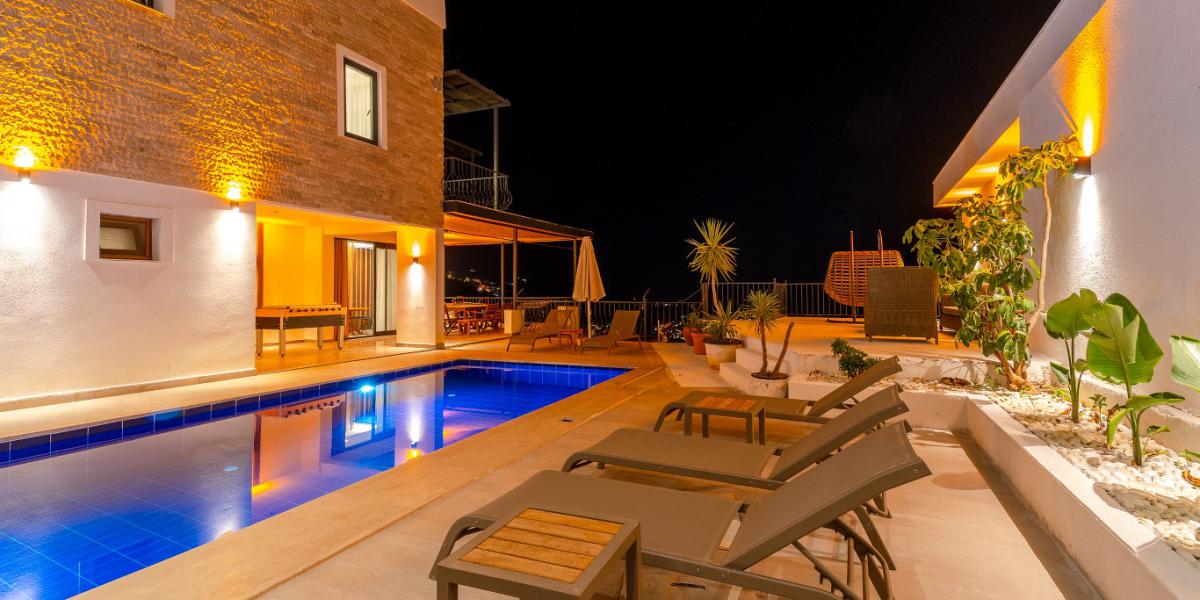 kalkan şehir merkezi ve plajlara araçla sadece beş dakikalık mesafede yer alan villamız hem merkeze yakınlığı hem de doğanın huzurunu bir arada yaşatmaktadır. kendi özel otoparkı bulunan ve güvenli bir bölgede yer alan bu kiralık villa kalkan tatilini lüks detaylarla birleştirmek isteyen misafirlerimiz için en doğru adreslerden biridir.