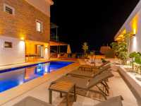 Villanın her noktasından izlenebilen kesintisiz deniz manzarası tatiliniz boyunca size eşlik ederken ahşap çitlerle çevrelenmiş havuz alanı ve bahçesi dışarıdan görünürlüğü engelleyerek tam mahremiyet sunmaktadır.