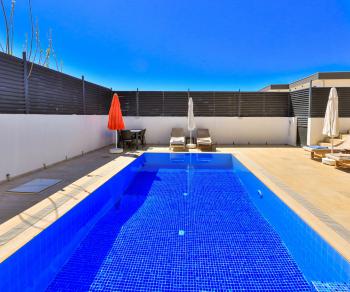 Villamızın havuz terası etrafı perde ile kapatılarak korunaklı hale getirilmiştir. Villmızda tatailiniz boyunca ihtiyacınız olacak ana ev gereçleri ve mutfak ekipmanları mevcuttur.
