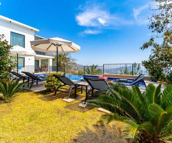 . Deniz manzarasına sahip olan bu villa, özellikle kalabalık aileler için ideal bir tatil imkanı sunmaktadır. Özel yüzme havuzuyla misafirlerimize keyifli ve huzurlu bir tatil ortamı sağlamaktadır. Ayrıca balayı çiftleri için tasarlanmış süit odasında çift kişilik bir jakuzi bulunmaktadır.