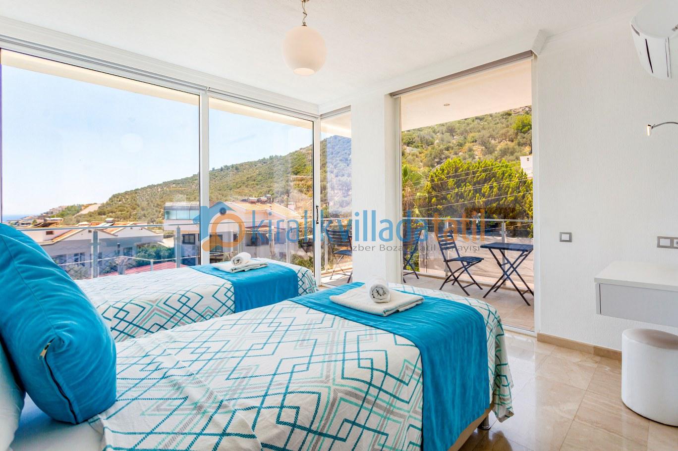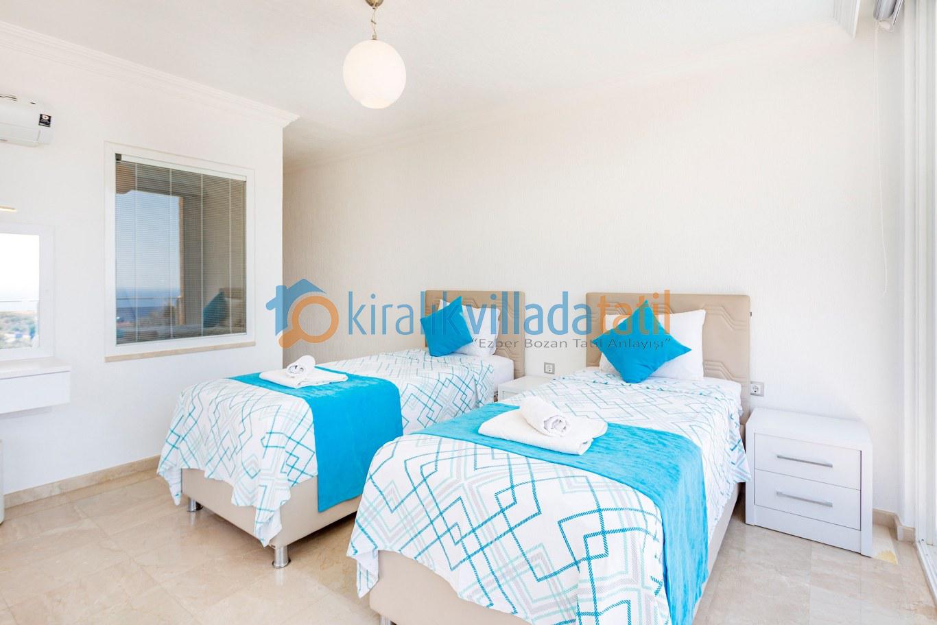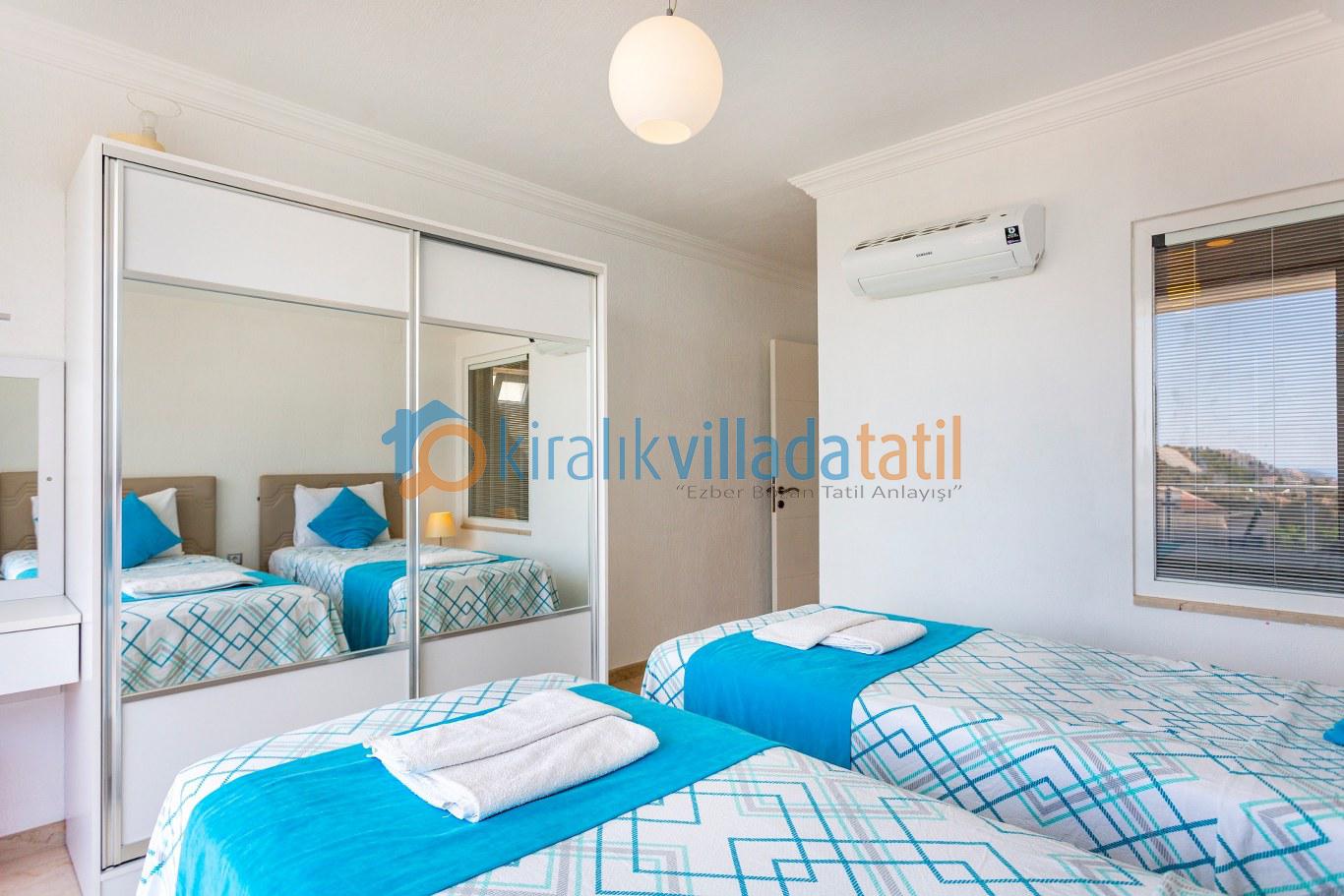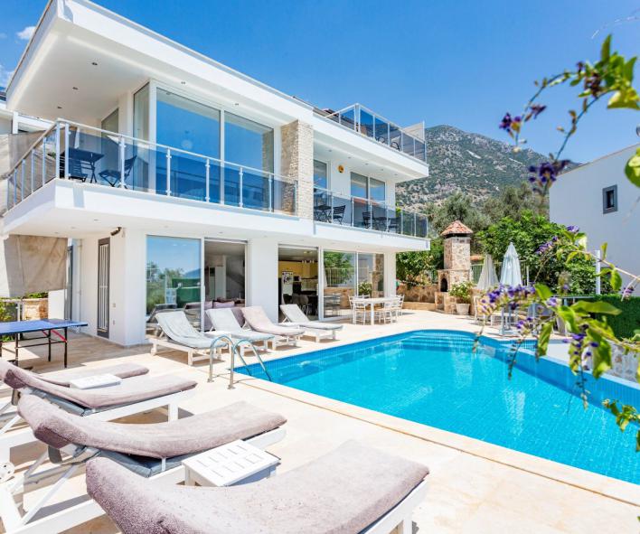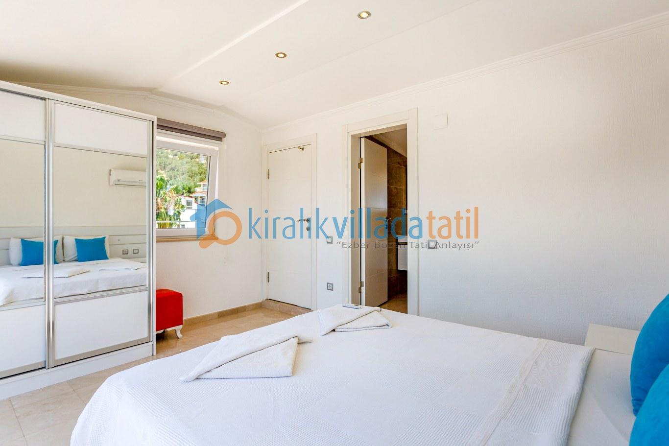 Kalkan merkeze yaklaşık 1,5 km mesafede bulunan villa, Akbel’in sakin atmosferini merkezin canlılığıyla birleştirir. Tüm yatak odalarının özel banyo ve WC’ye sahip olması, kalabalık gruplarda dahi konforlu bir konaklama imkânı sunar. Akdeniz’e hâkim manzarası sayesinde günün her saatinde keyifli bir tatil atmosferi oluşur.