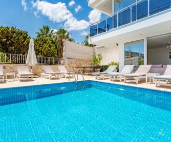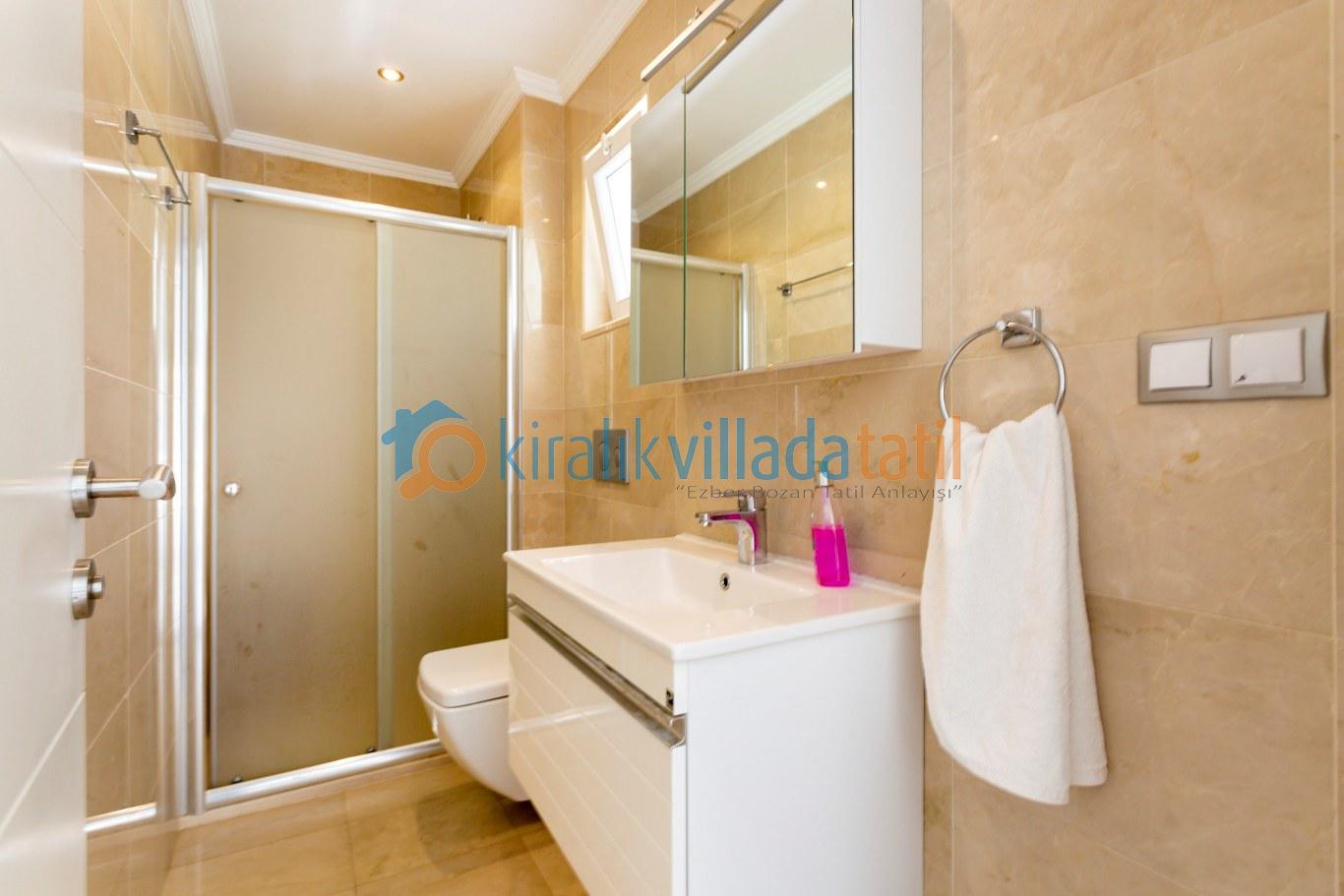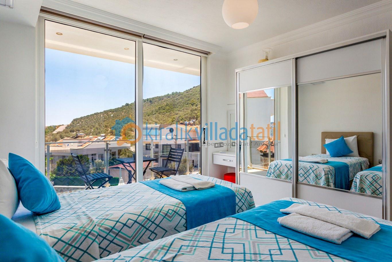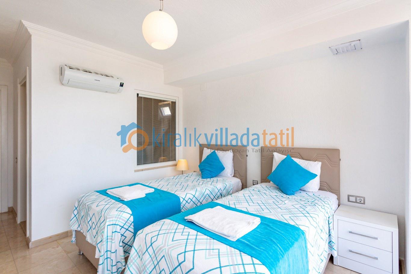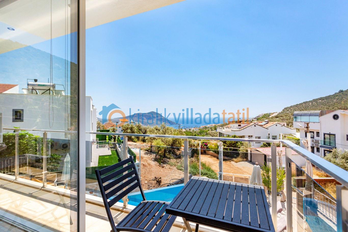 Kalkan merkeze yaklaşık 1,5 km mesafede bulunan villa, Akbel’in sakin atmosferini merkezin canlılığıyla birleştirir. Tüm yatak odalarının özel banyo ve WC’ye sahip olması, kalabalık gruplarda dahi konforlu bir konaklama imkânı sunar. Akdeniz’e hâkim manzarası sayesinde günün her saatinde keyifli bir tatil atmosferi oluşur.
