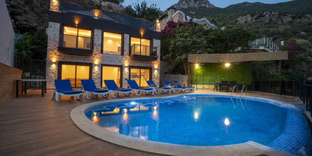 Kalkan Akbel bölgesinde yer alan bu deniz manzaralı villa merkezi konumu ve geniş kapasitesiyle villa kiralama sürecinde hem manzara hemde konfor arayan misafirler için öne çıkan bir kiralık villa alternatifidir.
