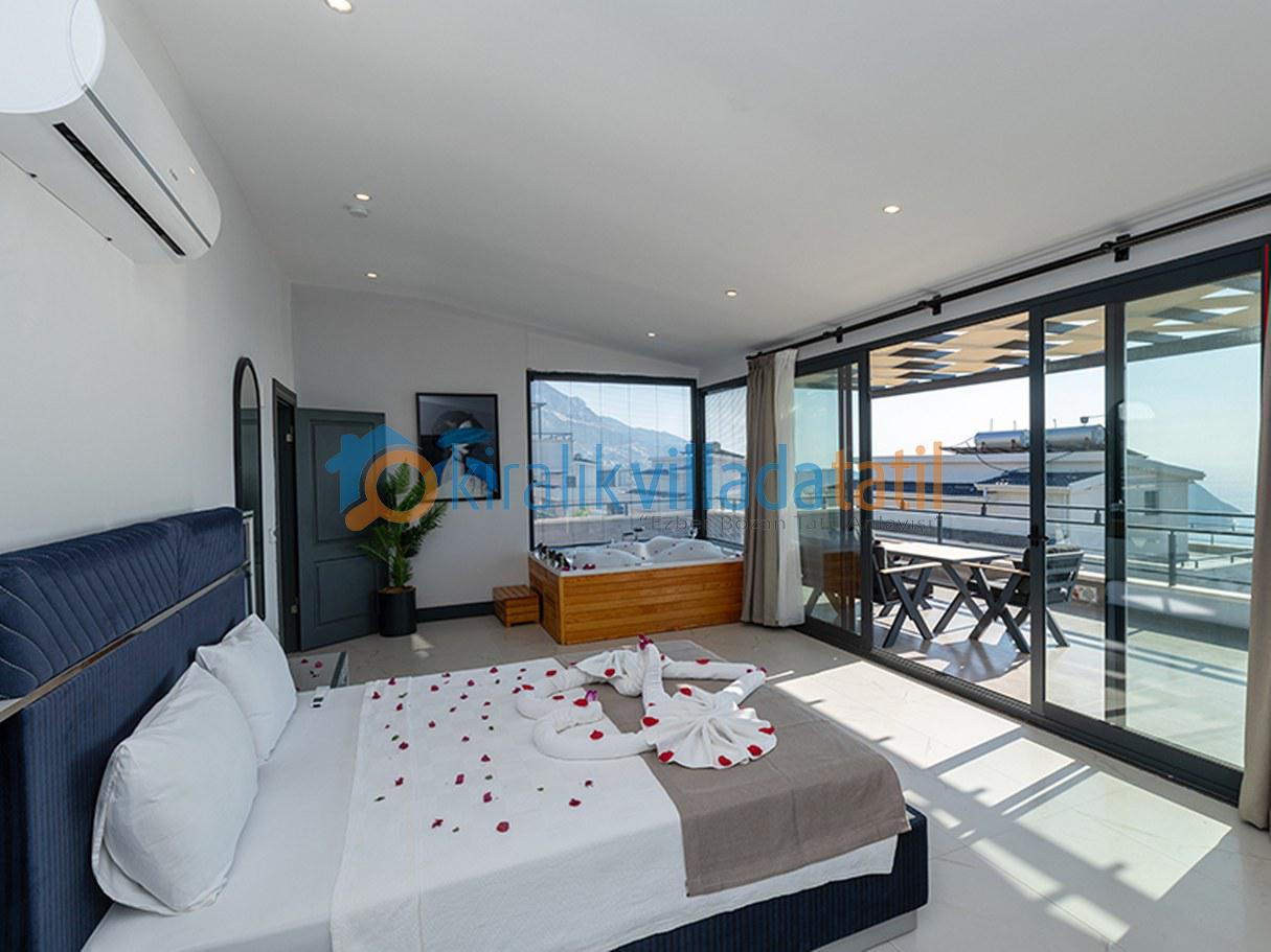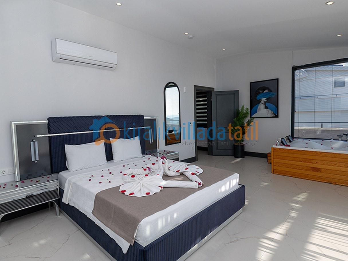 Modern tasarım ve rahatlığı bir araya getiren bu lüks villa, geniş ve aydınlık yaşam alanlarıyla sizleri karşılıyor. Terasta yer alan jakuziyle gün batımını izleyerek eşsiz bir deneyim yaşayabilir, denize olan yakınlığıyla tatilin keyfini çıkarabilirsiniz. Kalkan’ın büyülü atmosferinde, sevdiklerinizle huzurlu ve keyifli vakit geçirmek için bu özel villayı tercih edebilirsiniz. Bu villada, her anı mutlulukla anacağınız değerli hatıralar biriktirecek ve tatilinizin tadını doyasıya çıkaracaksınız.