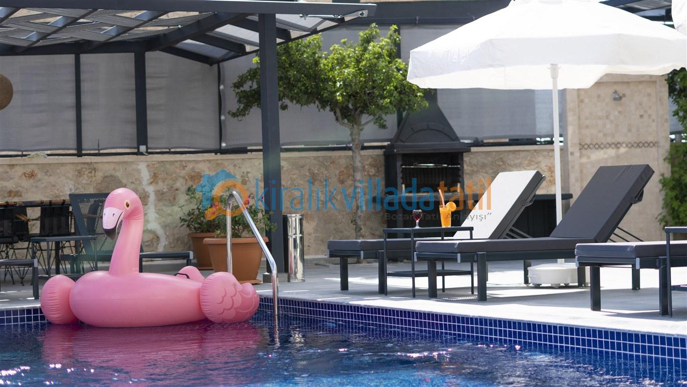 Geniş yaşam alanları, ferah odalar ve sade ama şık bir tasarımla hazırlanan bu villa, tatil boyunca ihtiyaç duyabileceğiniz her detayı düşünerek donatılmıştır. İster günün ilk ışıklarında havuz başında sessiz bir kahve keyfi yapın, ister akşam saatlerinde manzarayı izleyerek sevdiklerinizle vakit geçirin, burada geçireceğiniz her an huzurla hatırlanacak.