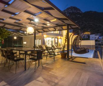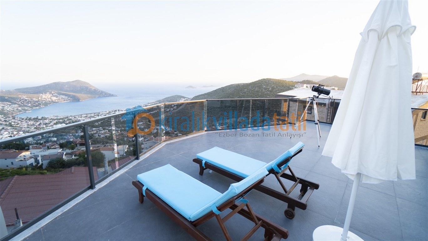 Villanın yüksek konumu sayesinde, Kalkan’ın masmavi koyu ve çevresindeki doğa eşsiz bir panorama sunar. Özellikle akşam saatlerinde manzaranın altın tonlara büründüğü anlar, tatilin en özel anılarından biri olmaya adaydır. Villanın terasında yer alan teleskop, misafirlere hem deniz hem de uzak dağ manzaralarını daha yakından keşfetme imkânı sunar. Bu küçük ama özel detay, tatil boyunca Kalkan’ın doğasıyla bağ kurmanızı sağlar.