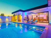 Kalkan merkeze yakın konumu sayesinde plaja yalnızca 2 km mesafede yer alması, yaz aylarında deniz manzaralı kiralık villa arayan misafirler için büyük avantaj sağlar. Villanın özel havuz terasında yer alan perdeleme sistemi, alanı tamamen korunaklı hale getirerek muhafazakâr ailelere güvenli bir tatil ortamı sunar.