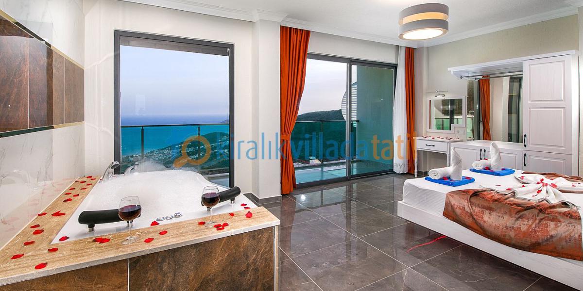 Villada yer alan iki yatak odasında da çift kişilik yatak, özel banyo ve WC bulunmaktadır. Yatak odalarından birinde bulunan jakuzi, özellikle romantik bir tatil planlayan misafirler için keyifli bir detay sunar. Günün yorgunluğunu manzara eşliğinde atmak isteyenler için villa, konforu ve mahremiyeti bir arada sunan ideal bir yaşam alanı oluşturur.