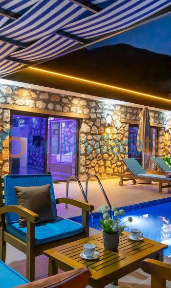 Bu ilan ait Detaylı açıklama ve bilinmesi gereken detaylarKalkan Çavdır Bölgesi'nde bulunan lüks villamız balayı konsept olarak hazırlanmış 2 kişilik villamızdır. Balayı çiftlerimiz için özel hazırlanmış villamız, sizi doğa manzarası ve uzaktan panaromik deniz manzarası ile karşılayacaktır. Havuz ve havuz terasının dış gözlere kapalı olması sayesinde, villamız muhafazakar çiftlerimiz için de uygundur. Huzurlu bir tatil geçireceğiniz villamızda, tatiliniz boyunca ihtiyacınız olacak bütün mutfak malzemeleri de mevcuttur.