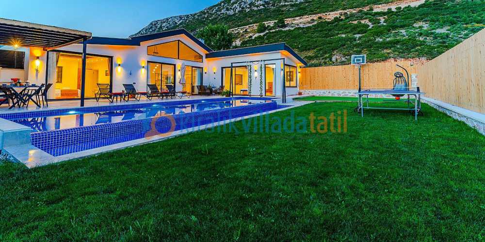 Kalkan Bezirgan bölgesinde yer alan bu lüks villa geniş bahçesi, korunaklı yapısı ve aile dostu donanımıyla kiralık villa ve villa kiralama seçenekleri arasında doğa içinde, konforlu ve keyifli bir tatil arayanlar için güçlü bir alternatif sunar