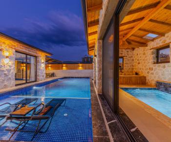 Villamız, lüks ve konforu bir arada sunarak misafirlerine huzurlu bir tatil deneyimi yaşatmayı amaçlamaktadır. Özel havuzunun yanı sıra, jakuzisi ve havuz alanında bulunan salıncak ile çocuk havuzu da misafirlerin kullanımına sunulmuştur. Bu sayede hem yetişkinler hem de çocuklar için keyifli vakit geçirme imkanı sağlamaktadır. Ayrıca villamızda sauna ve kapalı havuz gibi ekstra özellikler de bulunmaktadır, bu da misafirlerin yılın her döneminde rahatça tatil yapabilmelerini sağlamaktadır.
