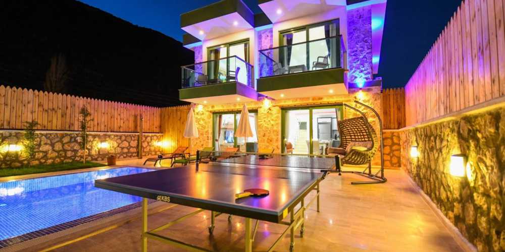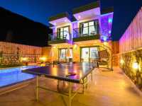 Villada bulunan jakuzi ise tatilinize ekstra konfor ve dinlenme imkanı sunan önemli detaylardan biridir Günün yorgunluğunu jakuzide atabilir doğanın sakin atmosferinde dinlenebilirsiniz Ayrıca villada yer alan masa tensi ise tatil boyunca eğlenceli vakit geçirmenize olanak sağlamaktadır.