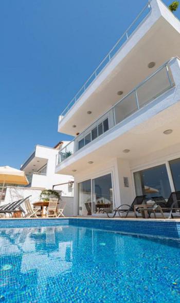 Villanın Öne Çıkan Özellikleri: Konum: Villa, Kalkan’ın huzurlu ve seçkin bölgelerinden Kışla’da yer almakta olup, merkeze yakın bir mesafededir. Kapasite: 5 yatak odası ve geniş ortak alanlarıyla toplamda 10 kişilik konaklama imkanı sağlar.