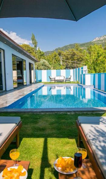 İçerisinde şık mobilyalar, modern mutfak ekipmanları, ütü ve saç kurutma makinesi gibi günlük yaşamınızı kolaylaştıracak tüm detaylar düşünülmüştür. Mutfak kısmında yemek yapımı için gerekli tüm araç gereçler eksiksiz bir şekilde yer almaktadır. Sessizlik ve huzur arayan balayı çiftleri için özel olarak tasarlanmış bu villamızda, unutulmaz bir tatil deneyimi yaşayabilirsiniz. Doğayla iç içe, keyif dolu bir konaklama için hemen rezervasyon yapabilirsiniz!