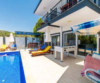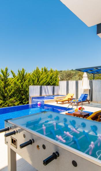 Doğa manzarasıyla çevrili olan bu özel villa, misafirlerine huzurlu ve keyif dolu bir tatil imkanı sunmaktadır. Geniş havuz terası ve tamamen korunaklı havuz alanı sayesinde, hem mahremiyetine önem veren misafirlerimiz hem de gözlerden uzak bir tatil arayan aileler için ideal bir seçenek oluşturmaktadır.