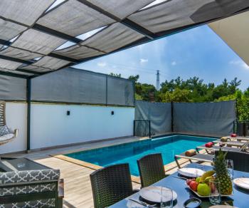 Villamızın giriş ve çıkışı, alt kattan tamamen ayrı olduğundan, herhangi bir mahremiyet problemi yaşamazsınız. Modern ve şık iç tasarımıyla dikkat çeken villa, hem çekirdek ailelere hem de balayı çiftlerine hitap etmektedir. Özel yüzme havuzunun tamamen korunaklı yapısı, muhafazakar misafirlerimiz için ideal bir konaklama imkanı sunmaktadır.
