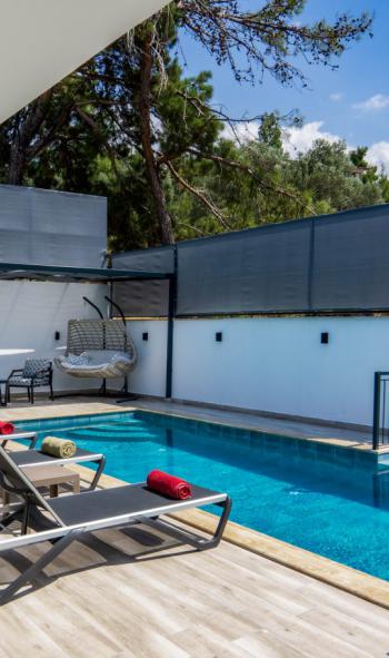 Havuz ve Teras Alanı Villanın havuz terası tamamen korunaklı olup, dışarıdan görünmeyecek şekilde tasarlanmıştır. Bu özellik, muhafazakar misafirlerimiz ve mahremiyet arayanlar için büyük bir avantaj sunmaktadır.