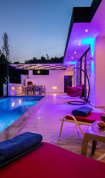 Salon kısmı, açık plan mutfak, klima ve televizyonla donatılmıştır. Villamızın hemen yanında konumlanan , Sığ havuzun ölçüleri 2 m x 3 m’dir. Villamıza en yakın plaj, Kalkan Halk Plajı’dır. Minimum 3 gece konaklama yapılabilir ve kısa süreli rezervasyonlarda 2 bin tl temizlik ücreti uygulanmaktadır.