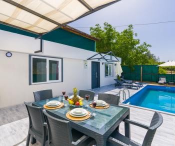 Havuz ve Bahçe: Villamızın havuzu, dışarıdan görünmeyecek şekilde korunaklıdır, böylece özel bir havuz deneyimi yaşayabilirsiniz. Bahçede salıncak, yemek masası, barbekü, şezlong ve güneş şemsiyesi gibi rahatlama alanları bulunmaktadır.