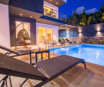 Muhafazakar bir tasarıma sahip olan villamız, özel yüzme havuzu, geniş teras alanı ve panoramik deniz manzarasıyla tatil keyfinizi bir üst seviyeye taşıyacak. Villamız, havuz terasında yer alan barbekü, kamelya, yemek masası ve oturma grupları ile açık havada keyifli zaman geçirmenize olanak sağlar.