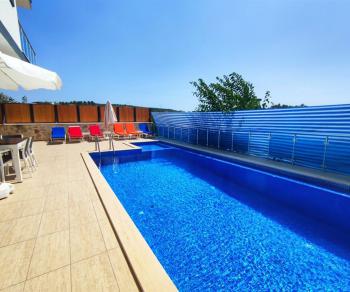 Villamızın en dikkat çeken özelliklerinden biri de havuz alanının korunaklı yapısıdır. Havuz alanı, dışarıdan görünmeyecek şekilde tasarlanmıştır ve bu özelliği sayesinde özellikle mahremiyetine önem veren misafirlerimiz için ideal bir tatil imkânı sunmaktadır.