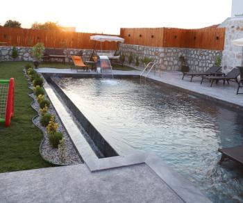 Doğayla iç içe konumlanmış olan bu villa, korunaklı bir havuz alanı ve bahçeye sahiptir, böylece dışarıdan görünme sorunu olmadan rahatça vakit geçirebilirsiniz. Bahçede çocuklar için bir oyun alanı yer almakta olup, havuz terasında ise langırt masası bulunarak eğlenceli bir tatil imkanı sunmaktadır.