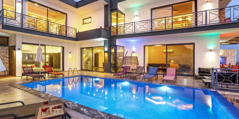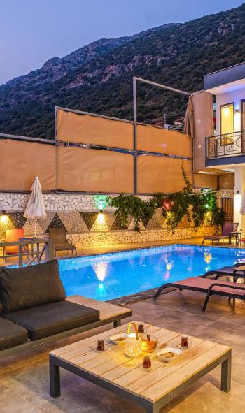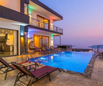 Toplam 3 yatak odası ve 6 kişilik konaklama kapasitesiyle, kalabalık aileler veya arkadaş grupları için mükemmel bir seçenektir. Geniş havuz terasında gün boyu güneşin tadını çıkarabilir, gün batımında Kalkan koyunun renk cümbüşünü izlerken huzuru hissedebilirsiniz. Akşamları ise ay ışığının yansıdığı havuz başında sevdiklerinizle keyifli anlar yaşamak bu villada bambaşka bir deneyime dönüşür.