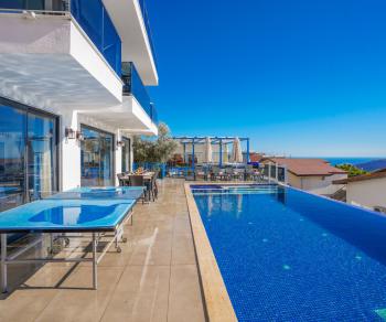 Kalabalık aileler ve arkadaş grupları için mükemmel bir tercih olan bu villa, özel yüzme havuzu ve kapalı havuzu ile konforlu bir tatil deneyimi yaşatmaktadır. Tüm gün boyunca, sevdiklerinizle birlikte eşsiz manzaranın keyfini çıkarabileceksiniz.