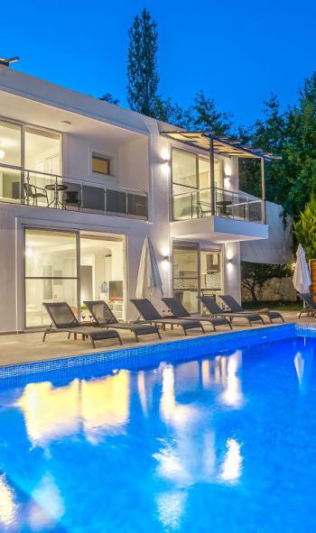 Villamız çevresindeki az yapılaşma sayesinde mahremiyete önem veren aileler ve muhafazakar tatilciler için oldukça uygundur. 10 metre uzunluğunda geniş bir yüzme havuzuna sahip olan villamızda, çocuklar için de güvenli bir sığ havuz bölümü bulunmaktadır. Havuz çevresi ahşap bloklarla çevrilmiş olup, ağaçlar ve bitkilerle dekore edilmiştir.