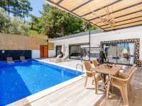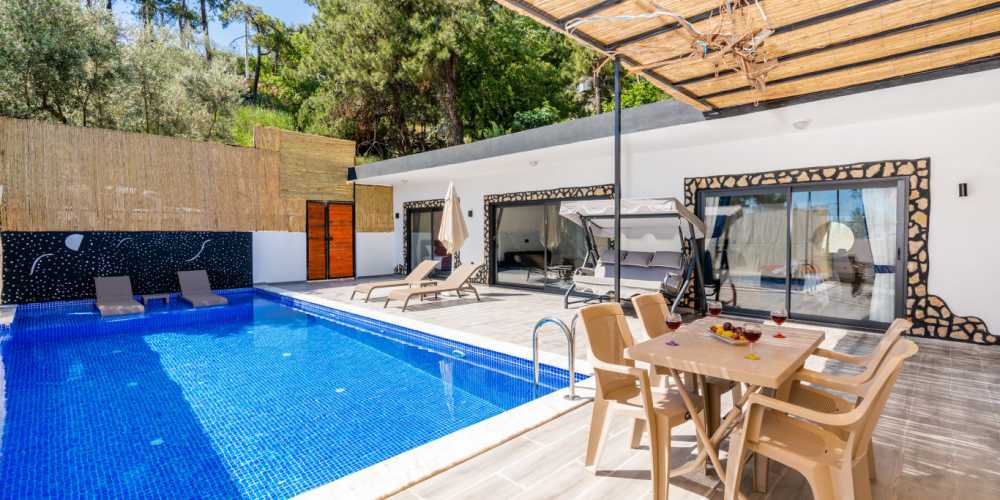 Muhteşem doğa manzarasına sahip olan bu özel villa, korunaklı havuzu sayesinde gözlerden uzak bir tatil arayışında olan misafirler için ideal bir seçenektir.