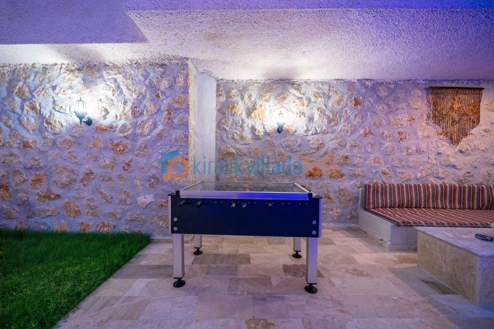 Bahçede bulunan olanaklar: Korunaklı yüzme havuzu 4 adet şezlong ve 2 adet güneş şemsiyesi Bahçe yemek masası ve sandalyeleri Bahçe oturma alanı Damla salıncak Çocuk oyun alanı Taş barbekü İnternet ve Teknik Bilgiler Villamızda Wi-Fi bağlantısı bulunmaktadır. Ancak, bölgenin altyapı durumu nedeniyle internet sağlayıcılarından kaynaklanan kısa süreli kesintiler yaşanabilmektedir. İnternet bağlantısı; e-posta gönderme, sosyal medya kullanımı, haber sitelerini takip etme gibi temel ihtiyaçlar için yeterli olmakla birlikte, film ve video izleme ya da büyük dosya indirme gibi yüksek veri gerektiren işlemler için uygun değildir.