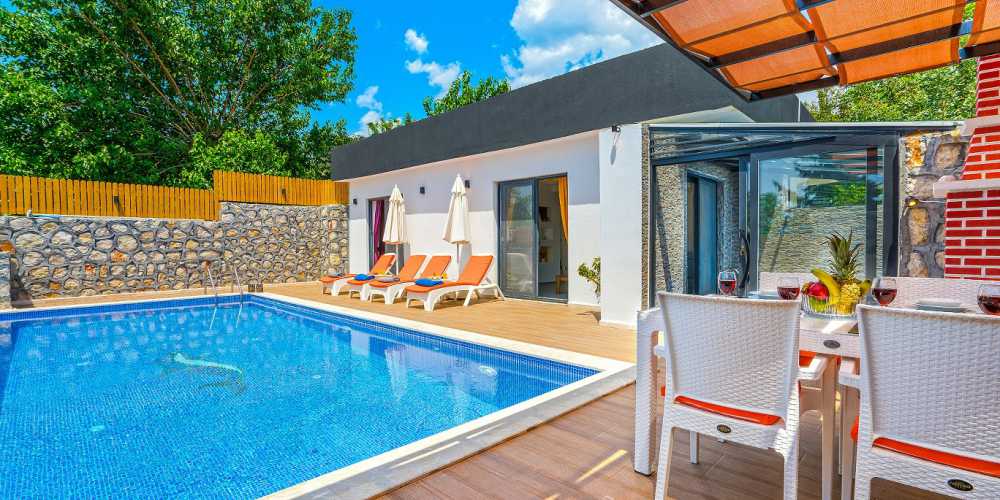 Kalkan Üzümlü Mevkiinde 4 Kişilik Korunaklı Tatil Villası