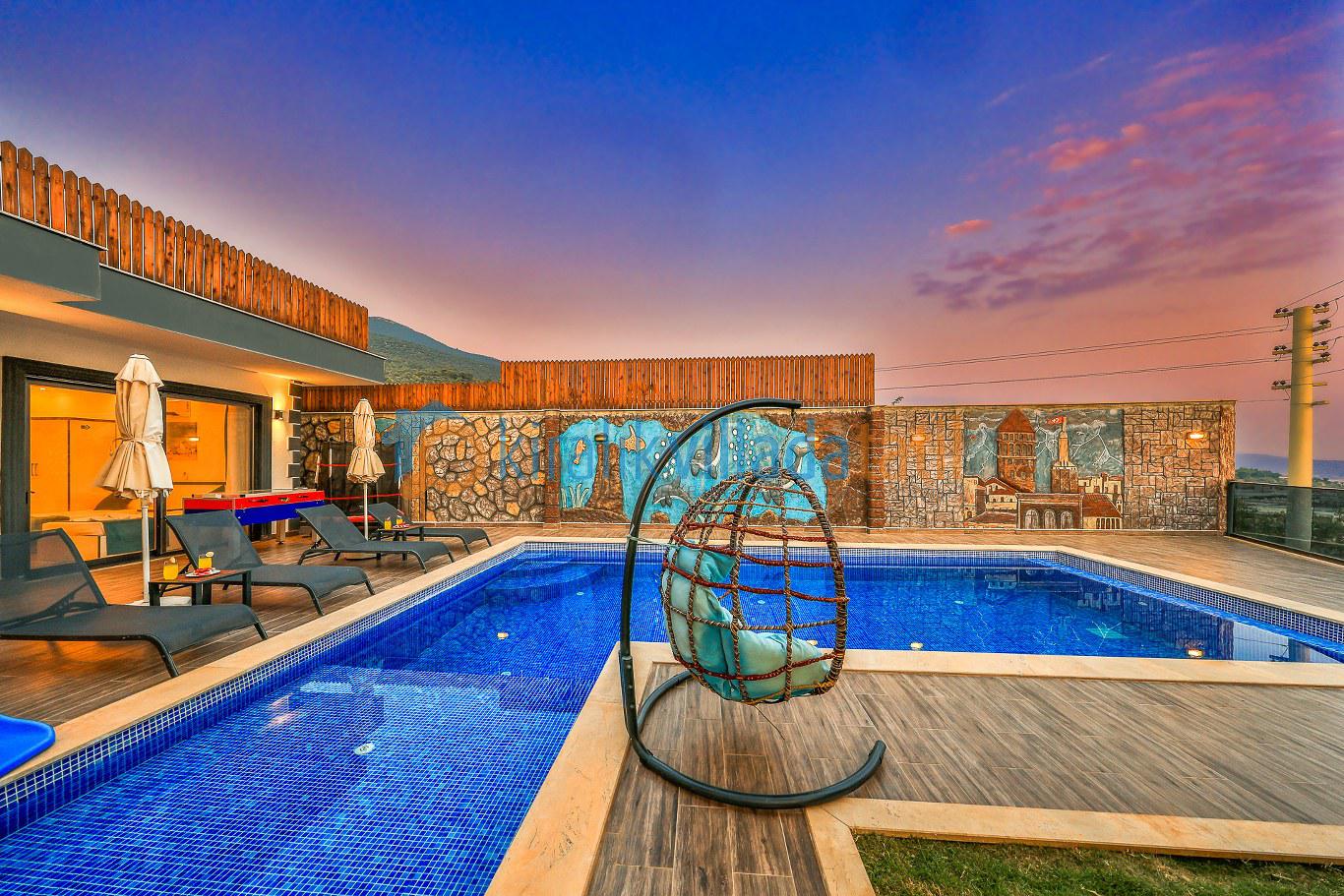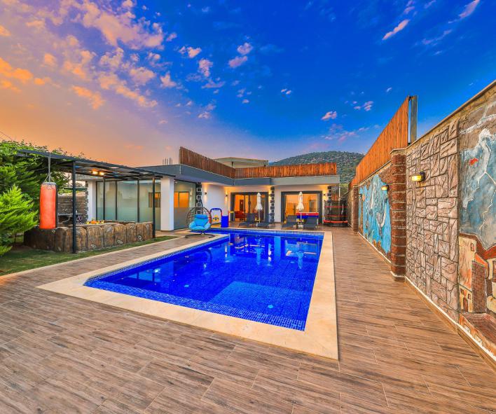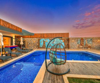 Bu ilan ait Detaylı açıklama ve bilinmesi gereken detaylarKalkan'ın Çavdır Bölgesinde yer alan villa, iki yatak odası ile 4 kişilik bir villadır. Havuz ve havuz terası dış gözlerden uzak olan villa, mahremiyetine önem veren aileler ve balayı çiftleri için uygun bir villadır.