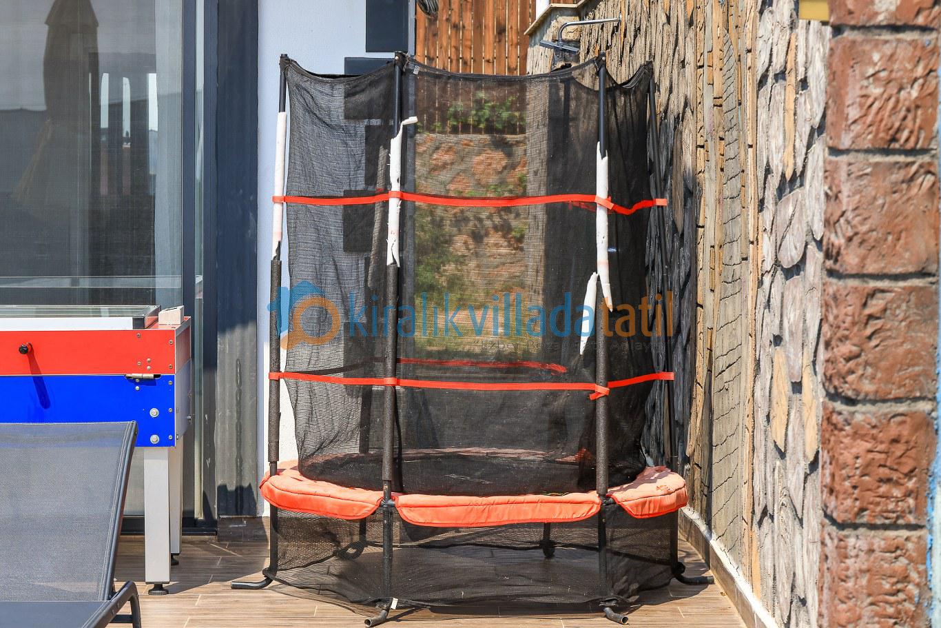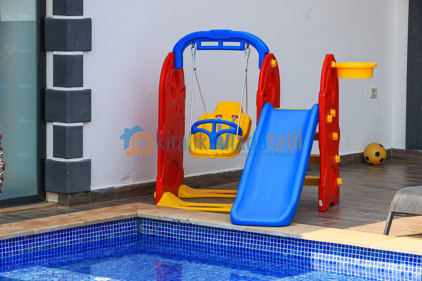 Doğa içerisinde yer alan villa, sessiz, huzurlu bir tatil sunmaktadır. Aynı zamanda, villada bulunan, langırt, mangal alanı, çocuklar için oyun alanları gibi olanaklar ile eğlenceli zamanlar da geçirebilirsiniz. Aynı zamanda çocuk havuzu da mevcuttur.