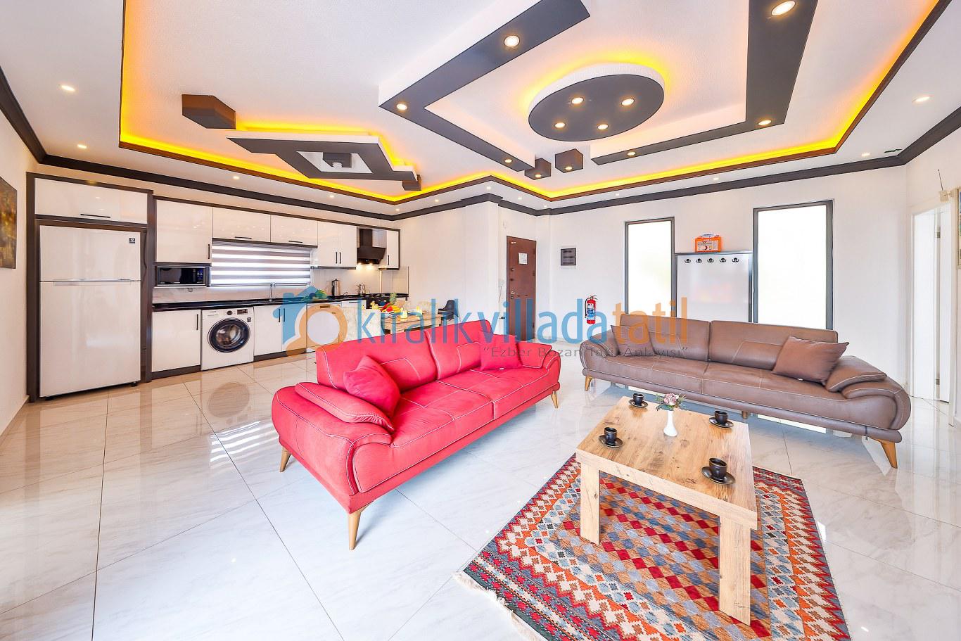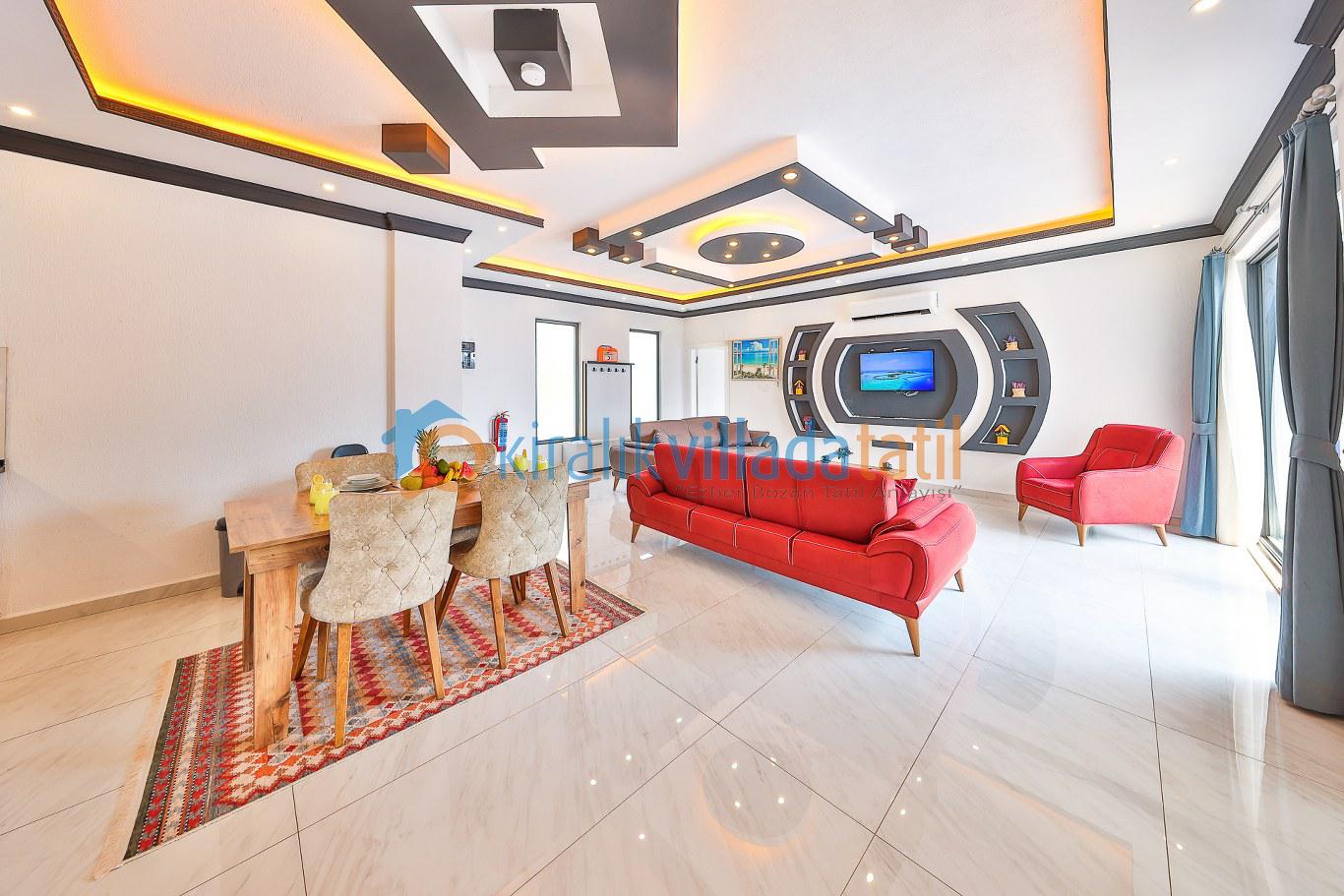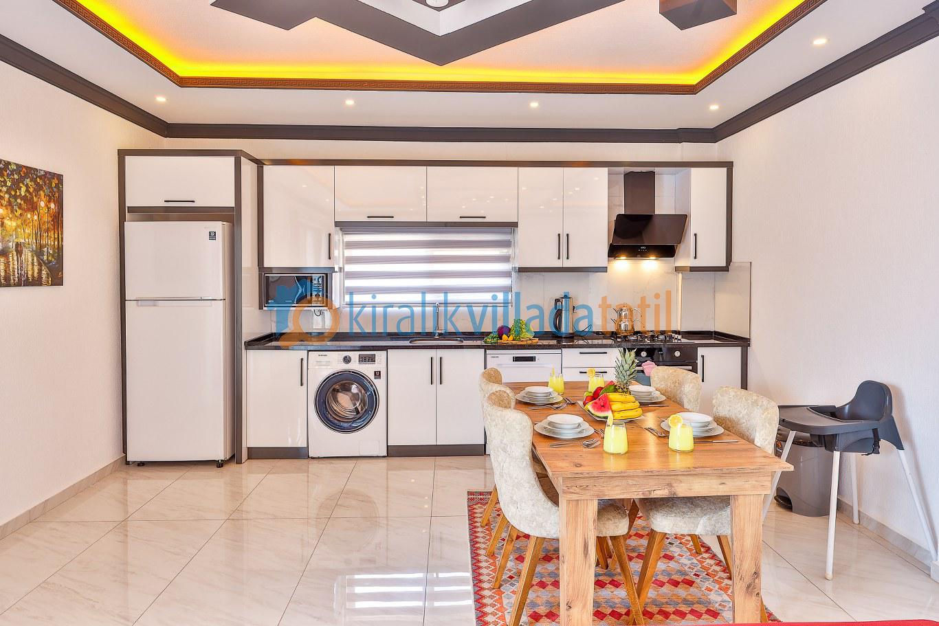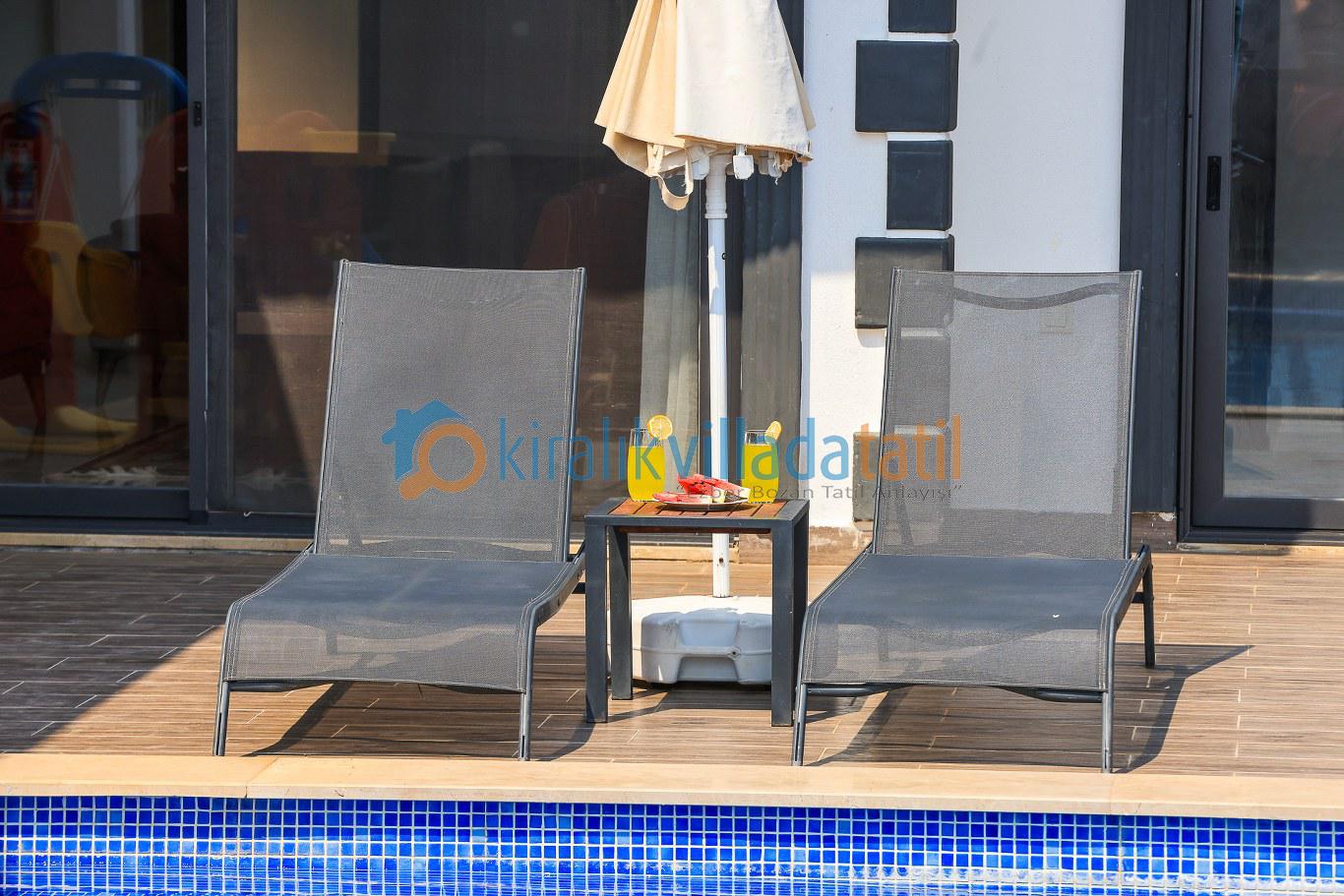 Tatil boyunca ihtiyaç olabilecek gerekli ev ve mutfak araç gereçleri villada mevcut olup, malzemeler modern ve şık olarak seçilmiştir.