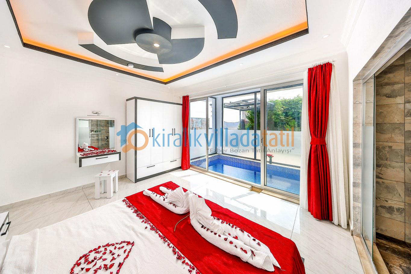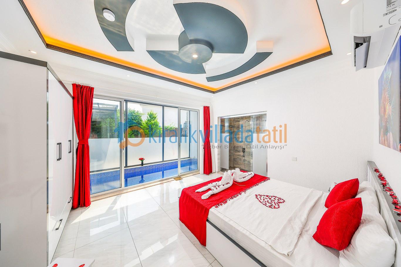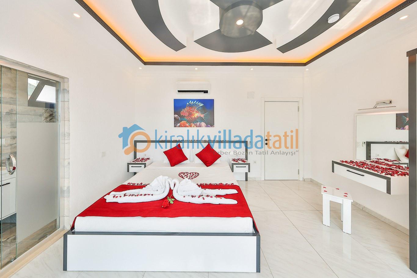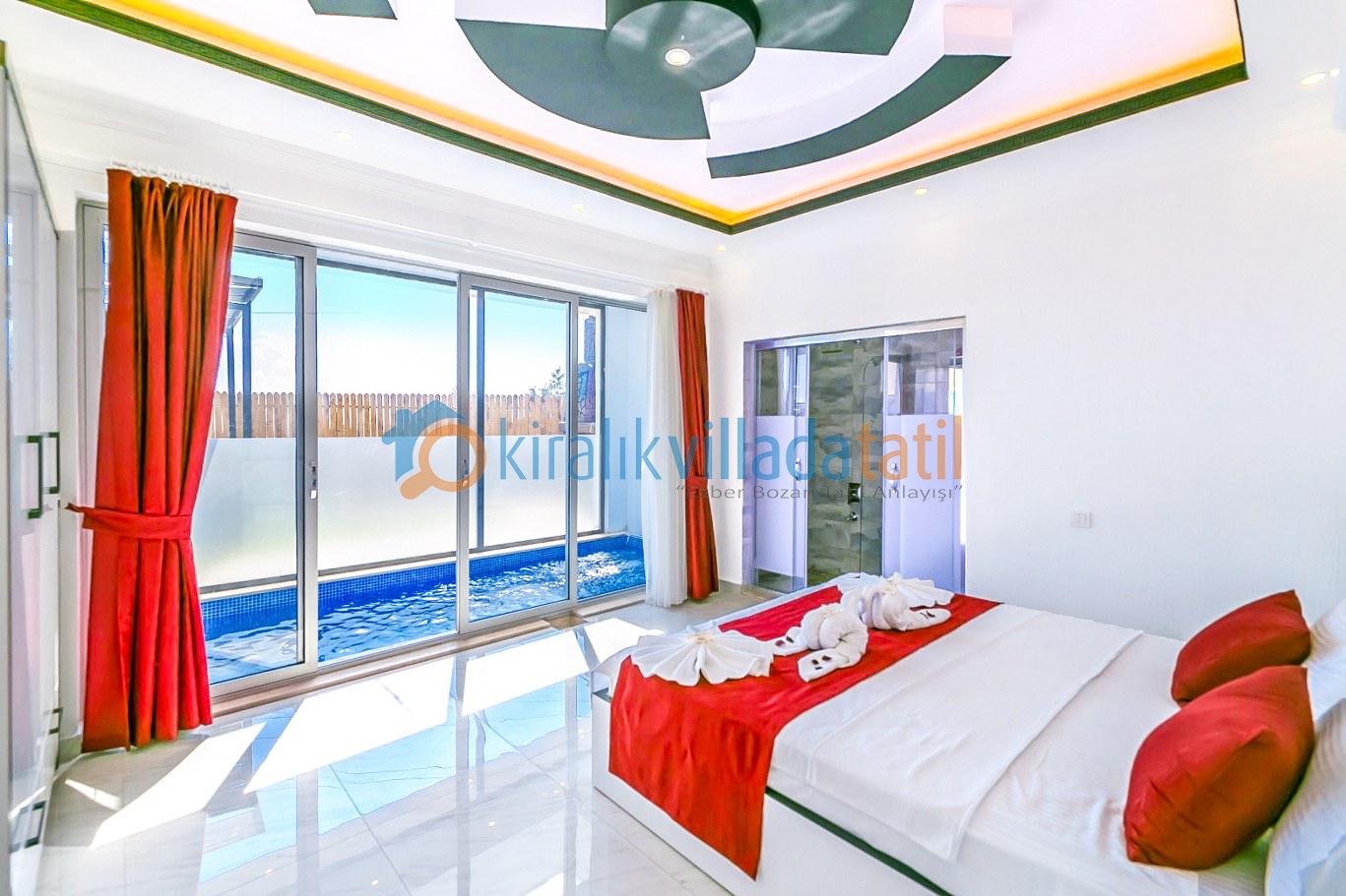İki yatak odası bulunan villanın, ana yatak odasında çift kişilik yatak, diğer yatak odasında ise, iki adet tek kişilik yatak mevcut olup, yatak odalarının kendilerine ait oda eşyaları ve banyo-wc'si bulunmaktadır.