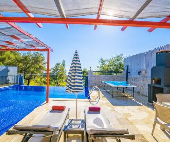 Havuz Bilgileri Villa Simon'da özel bir yüzme havuzu ile sığ havuz bulunmaktadır. Havuz alanında şezlonglar, güneş şemsiyeleri, mangal, yemek masası, hamak ve oturma grubu mevcuttur. Havuz Boyutları: 9,5 m x 4,5 m, Derinlik: 1,5 metre Sığ Havuz Boyutları: 3 m x 2,5 m