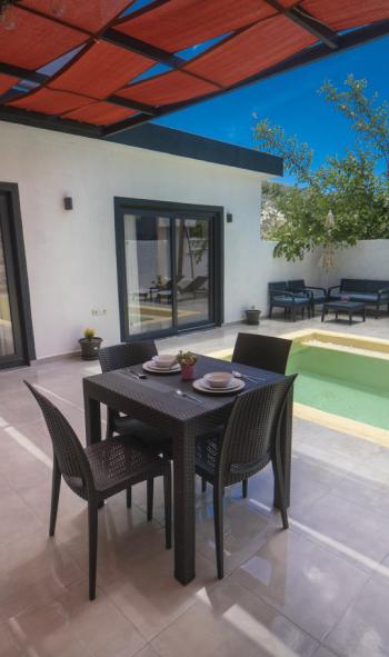 Havuz başında sevdiklerinizle keyifli vakit geçirebilir, doğanın tadını çıkarabilirsiniz. Ayrıca villanın çevresi, yeşilin her tonunu barındıran doğal bir manzarayla çevrilidir. Tüm İhtiyaçlarınız İçin Donanımlı olan Villamız, tatiliniz boyunca ihtiyaç duyabileceğiniz tüm mobilya ve ekipmanlarla donatılmıştır. Şık ve modern bir şekilde dekore edilen iç mekanlarda; konforlu bir oturma grubu, yemek masası, geniş yatak ve tam donanımlı bir mutfak bulunmaktadır. Mutfakta, yemeklerinizi kolayca hazırlayabileceğiniz ocak, fırın, buzdolabı, mikrodalga fırın, su ısıtıcısı (kettle) ve tencere-tava takımları gibi araç gereçler yer almaktadır. Kişisel eşyalarınız için ütü, saç kurutma makinesi gibi detaylar da düşünülmüş olup, tatiliniz sırasında evinizdeki rahatlığı yaşamanız hedeflenmiştir.