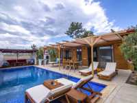 . Aileler, arkadaş grupları ve balayı çiftleri için mükemmel bir seçenek olan villamızda, tatiliniz boyunca ihtiyacınız olan her şey eksiksiz bir şekilde sağlanmaktadır. Tam donanımlı mutfağı, modern oturma grupları ve ferah yatak odaları ile evinizdeki konforu aratmayacak bir ortamda keyifli anlar yaşayabilirsiniz.