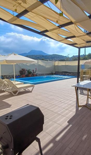 Villamız, havuzunun korunaklı olması sayesinde (havuzun dışarıdan görünmediği anlamına gelir) mahremiyetine önem veren misafirler için ideal bir tatil ortamı sunmaktadır.