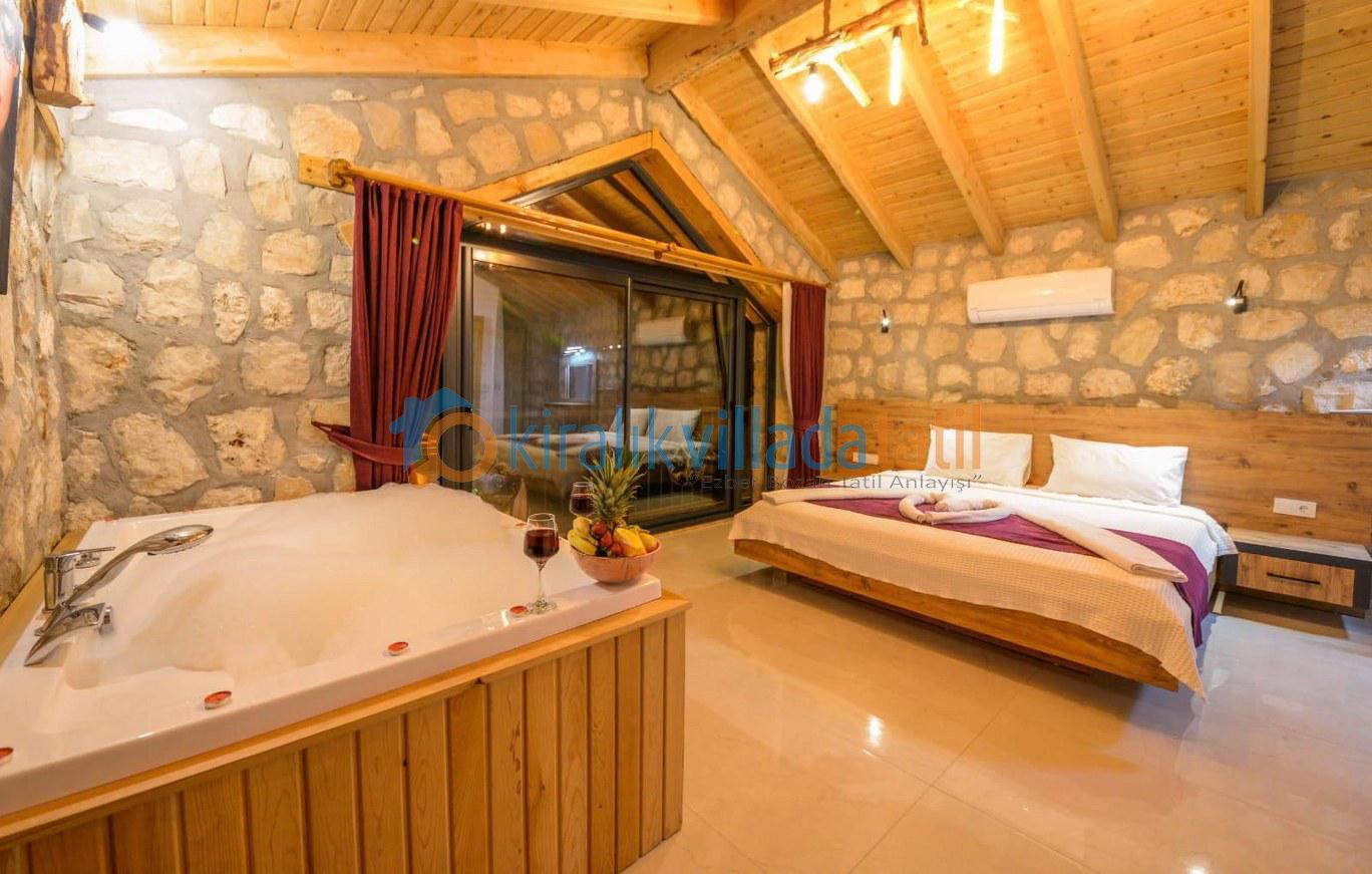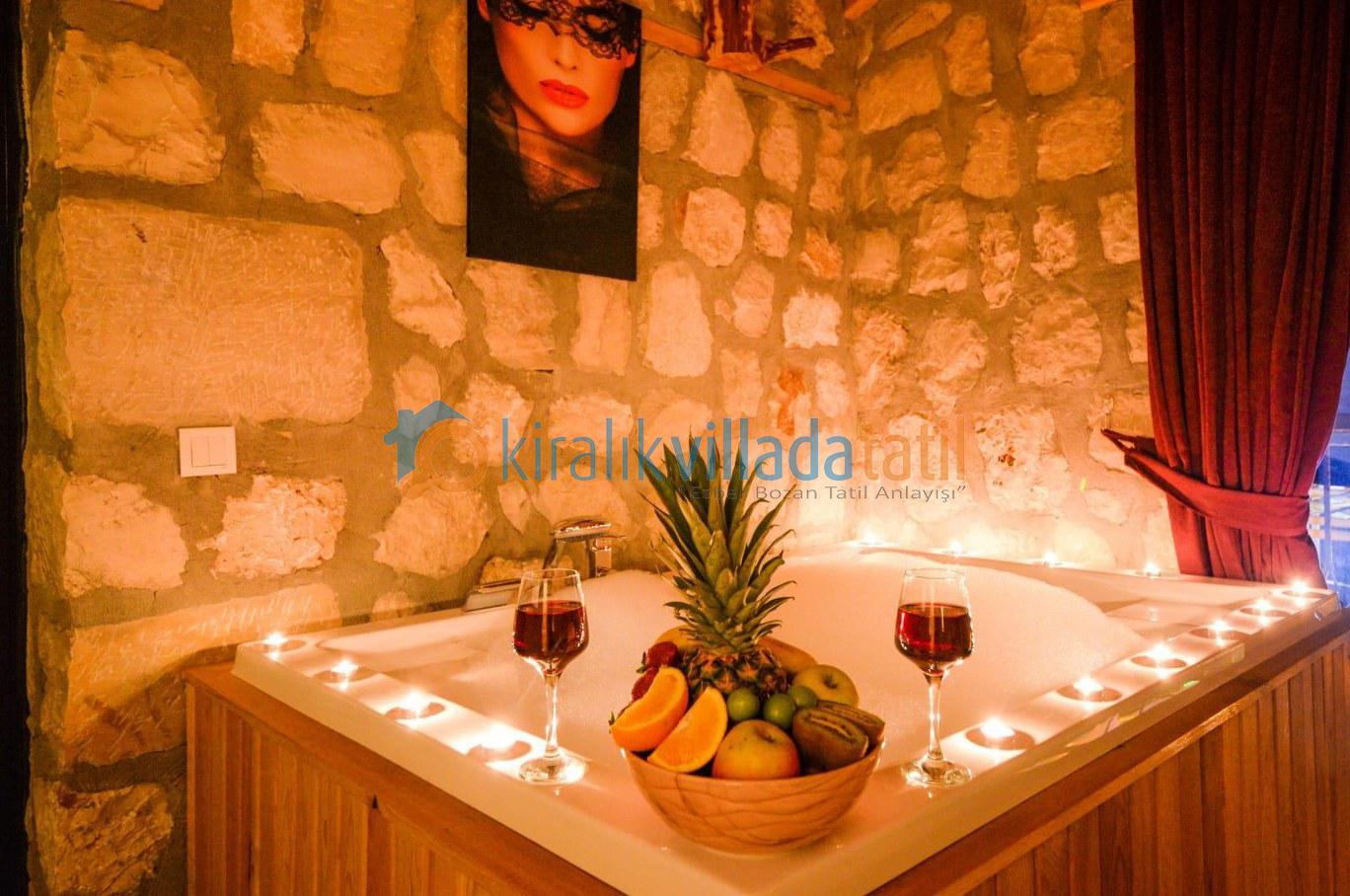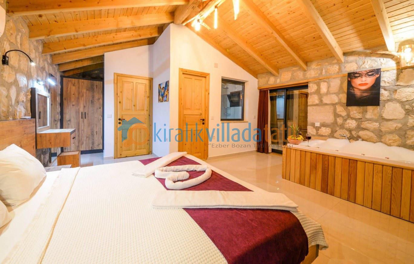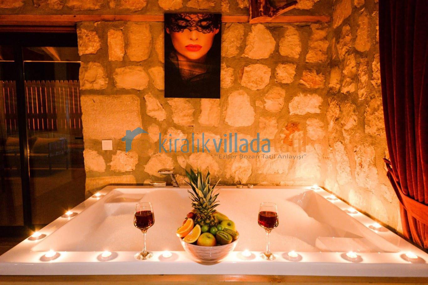 Özellikle muhafazakar aileler ve balayı çiftleri için ideal bir tatil ortamı sunulmaktadır. Villamızın özel yüzme havuzunda bir çocuk havuzu da bulunmaktadır. Balayı süitinde jakuzi, diğer yatak odasında ise iki adet tek kişilik yatak bulunmaktadır.