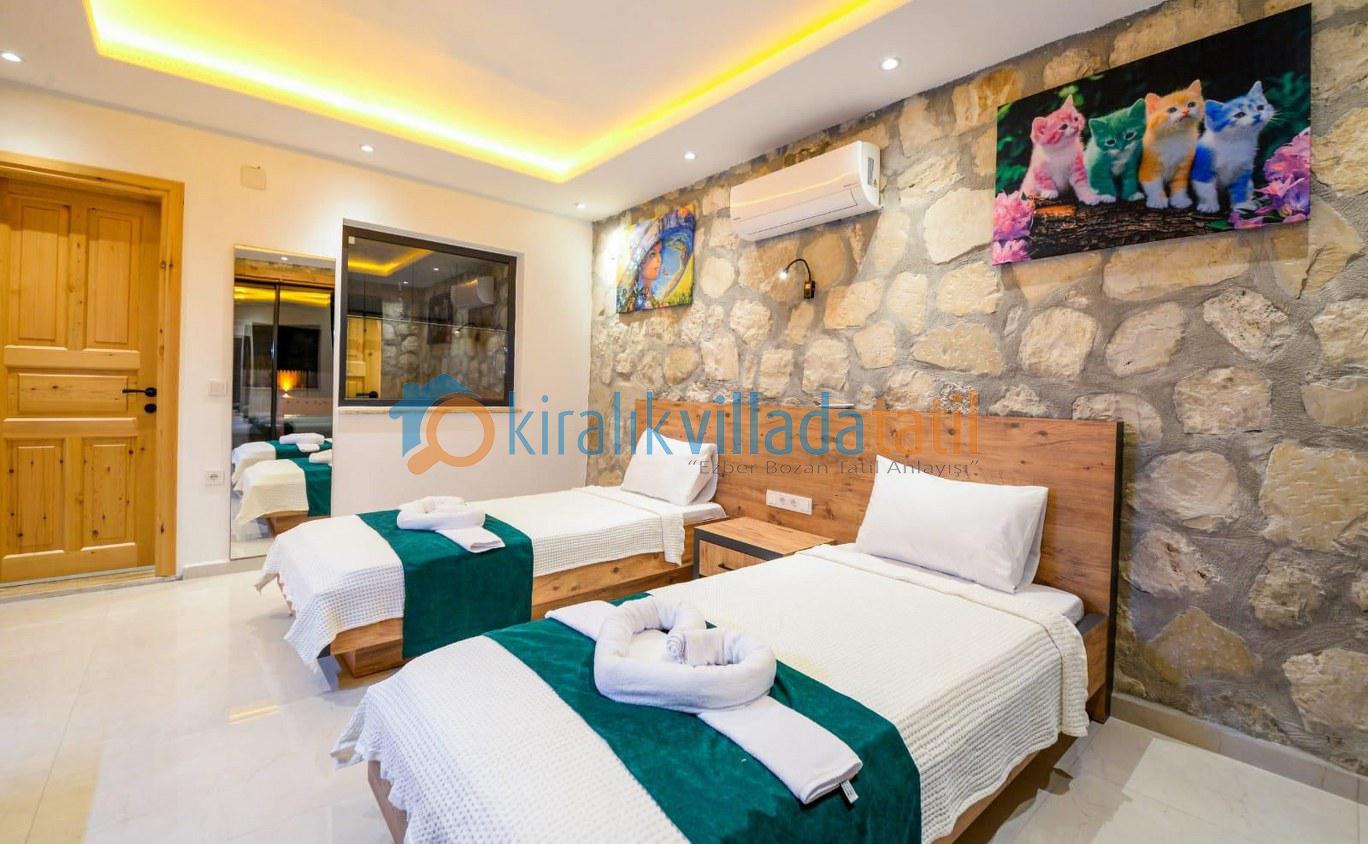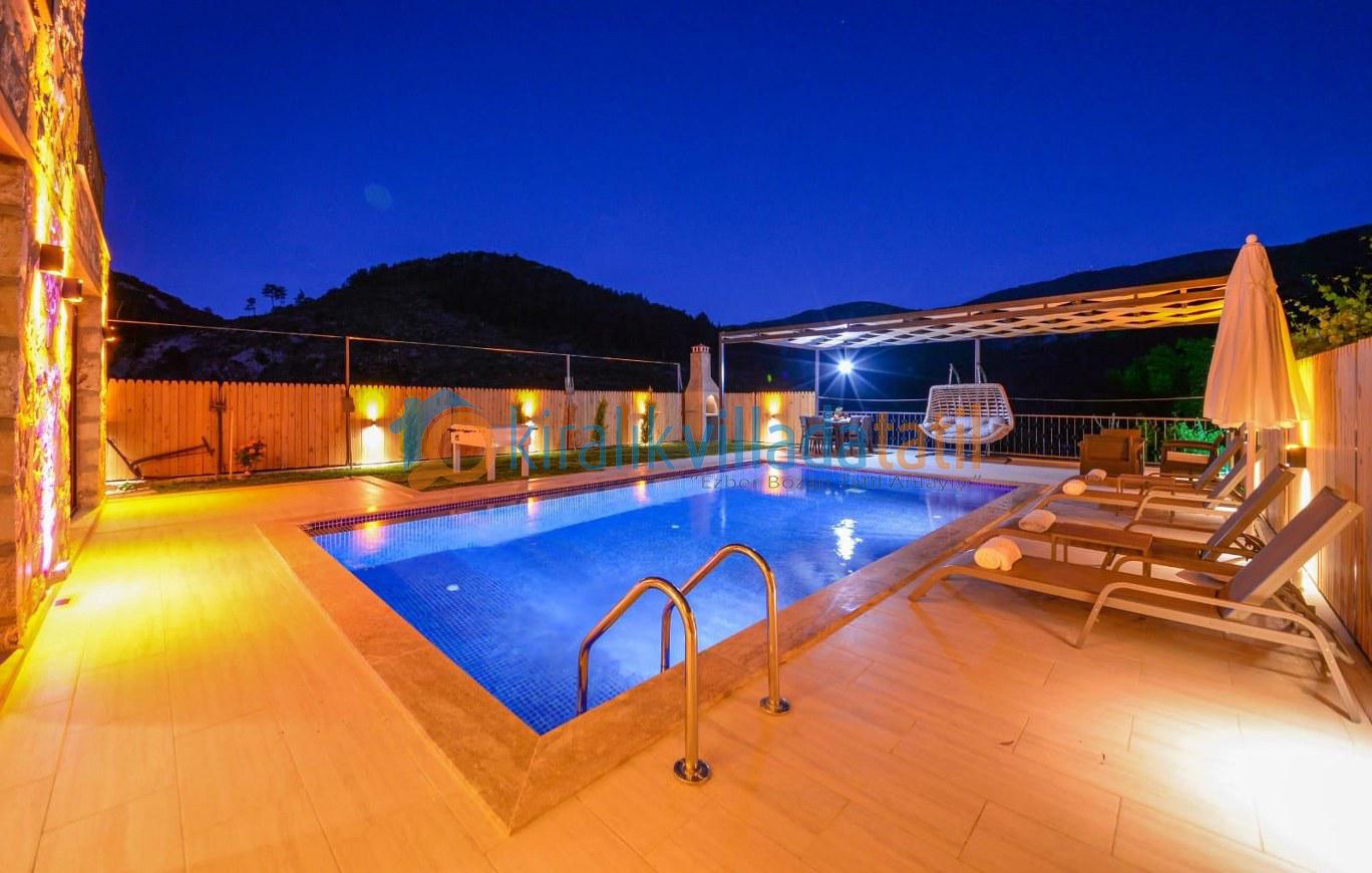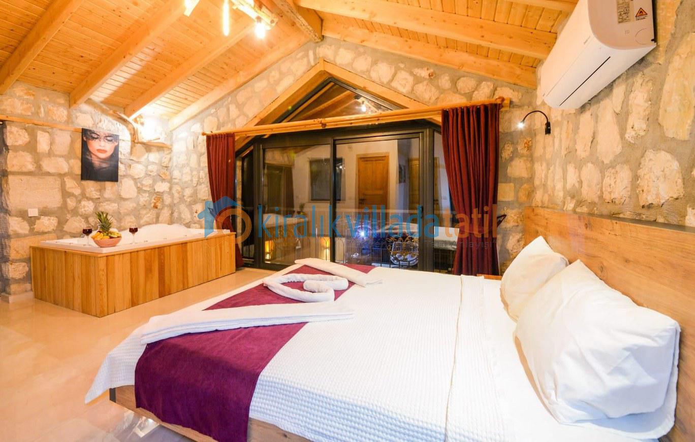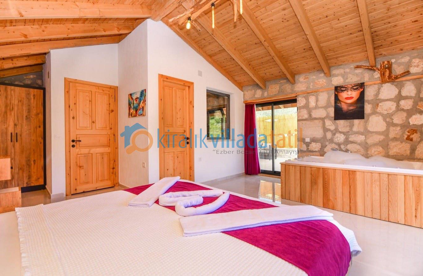 Özellikle muhafazakar aileler ve balayı çiftleri için ideal bir tatil ortamı sunulmaktadır. Villamızın özel yüzme havuzunda bir çocuk havuzu da bulunmaktadır. Balayı süitinde jakuzi, diğer yatak odasında ise iki adet tek kişilik yatak bulunmaktadır.