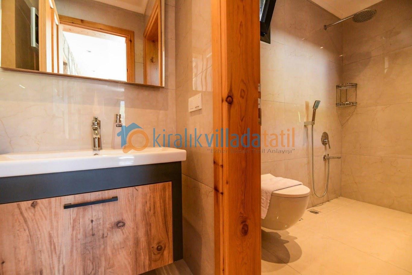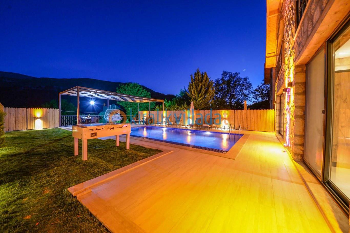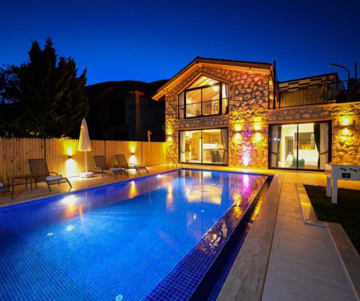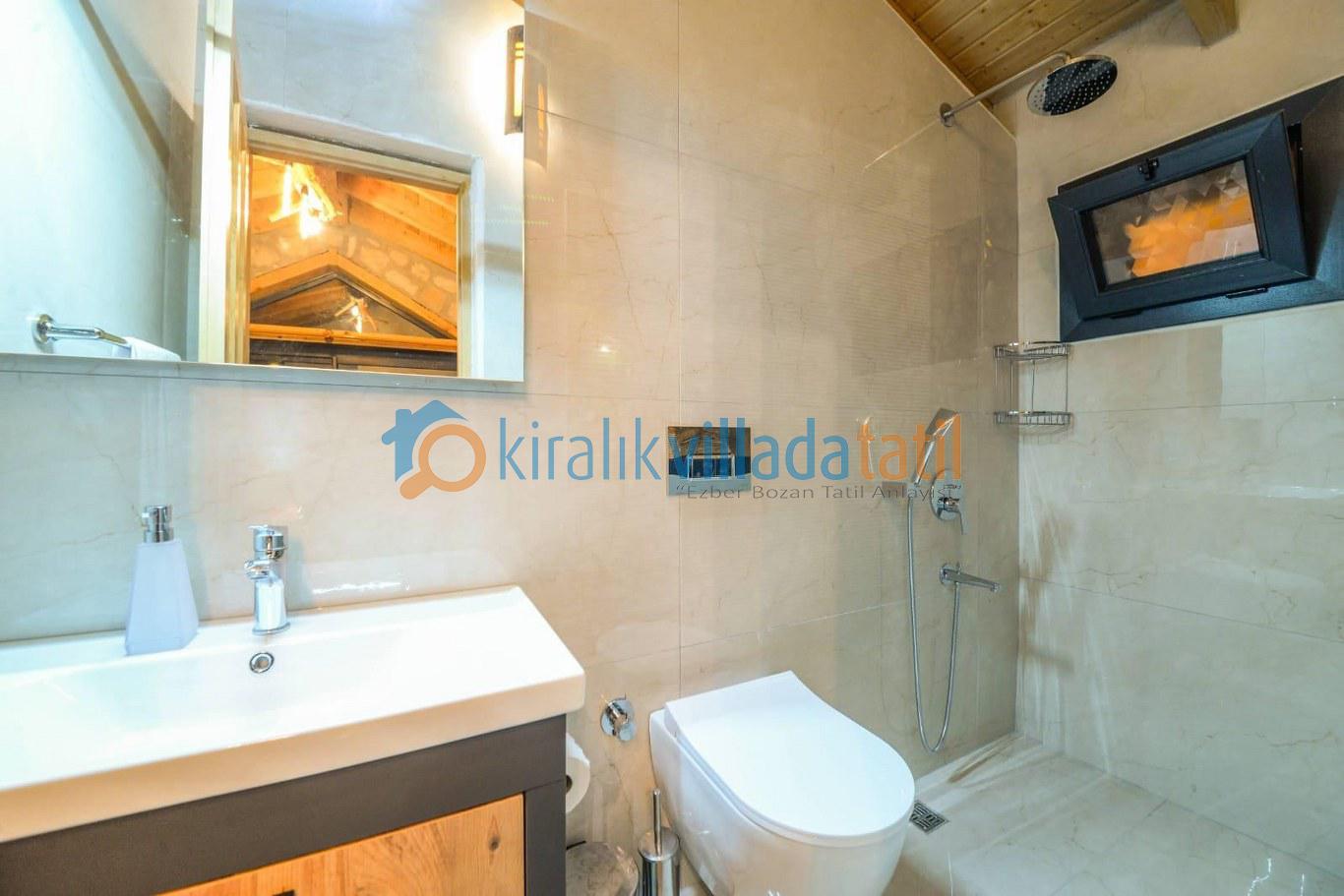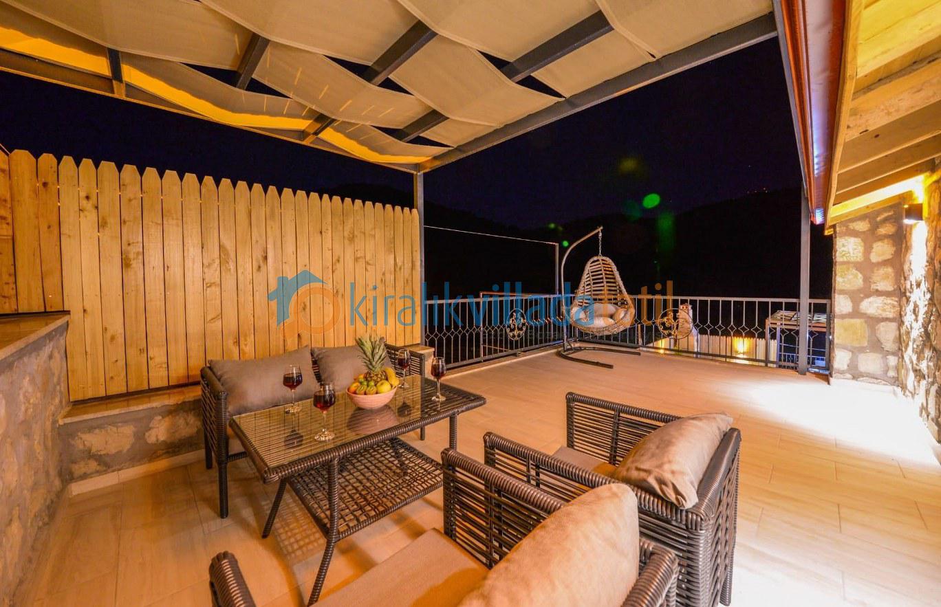 Doğa ile iç içe bir konumda bulunan villamızın bahçesinde salıncak ve langırt gibi eğlence olanakları mevcuttur. Taş ve ahşap işçiliğiyle dikkat çeken villamız, konforlu ve lüks bir şekilde döşenmiştir.