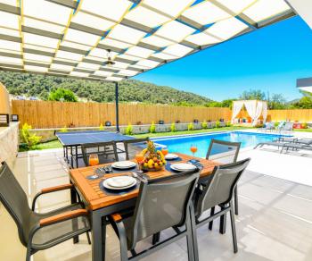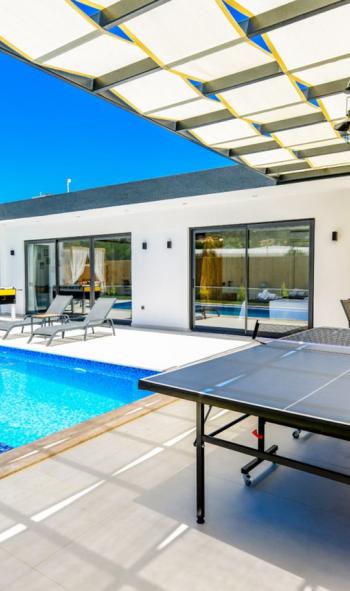 Özel havuzlu ve muhafazakar yapıya sahip olan villamız, mahremiyeti önemseyen tatil severler için ideal bir ortam sunar. Villanın öne çıkan özellikleri arasında keyifli anlar yaşamanız için özel olarak hazırlanmış masa tenisi alanı ve dinlenme imkanı sağlayan özel jakuzisi yer almaktadır.