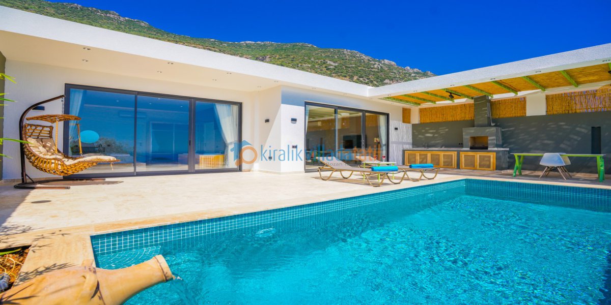 Bu ilan ait Detaylı açıklama ve bilinmesi gereken detaylarVillamız, Kalkan’ın Akbel bölgesinde yer alan, modern mimarisi ve konforlu tasarımıyla öne çıkan özel bir balayı villasıdır. Yeni inşa edilmiş olup, merkezi konumu sayesinde misafirlerine hem doğanın hem de denizin büyüleyici manzarasını sunmaktadır.