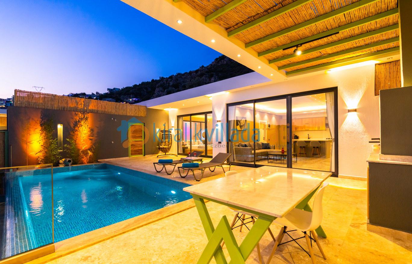 . Çiftlerimiz için en ince ayrıntılar titizlikle düşünülmüş olup, suit yatak odasında çift kişilik jakuzi de bulunmaktadır. Kalkan merkeze sadece 2 km mesafede konumlanan villamız, tatil yapmak isteyen ancak uzun yolculuklarla vakit kaybetmek istemeyen misafirlerimiz için oldukça ideal bir seçenektir.