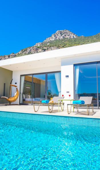Kalkan, sadece büyüleyici deniz manzaralarıyla değil, aynı zamanda balayı çiftlerine özel villalarıyla da öne çıkar.