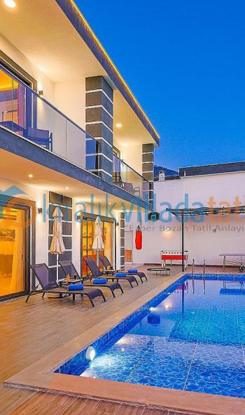 Bu ilan ait Detaylı açıklama ve bilinmesi gereken detaylarKalkan Çavdır mevkiinde olan villamız 2 yatak odası olup 4 kişilik kapasiteye sahiptir. Yatak odalarından bir tanesinde tüm yılın yorgunluğunu atabileceğiniz jakuzi yer almaktadır. Havuz ve havuz terası korunaklı bir hale getirilmiştir. Dışarıdan bir kimse tarafından görünmemektedir. Dış özel yüzme havuzuna entegre sığ havuz yer almaktadır.Villamız doğa içinde bulunmasından dolayı gözlerden uzak, sesiz sakin bir tatil yamak isteyen muhafazakar ailelerimiz ve balayı çiftlerimiz için ideal bir seçenektir.Villamız American mutfak olup ihtiyacınız olabilecek bütün eşyalar mevcuttur.